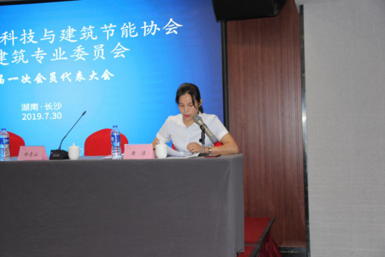省建科节能协会绿专委谢娟宣读《湖南省建设科技与建筑节能协会绿色建筑专业委员会会费收缴管理办法(修订稿)》。