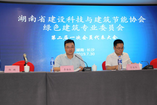 2019年7月30日上午,省建设科技与建筑节能协会绿色建筑专业委员会(以下简称“省建科节能协会绿专委”)第二届第一次会员代表会议在长沙召开。省住房和城乡建设厅建筑节能与科技处副处长李海浪、省建设科技与建筑节能协会秘书长丁佳伟、省建科节能协会绿专委主任委员殷昆仑、名誉主任杨瑛、杨青山等领导,各会员单位代表120余人参加了本次会议。会议由省建科节能协会绿专委秘书长黄洁主持。