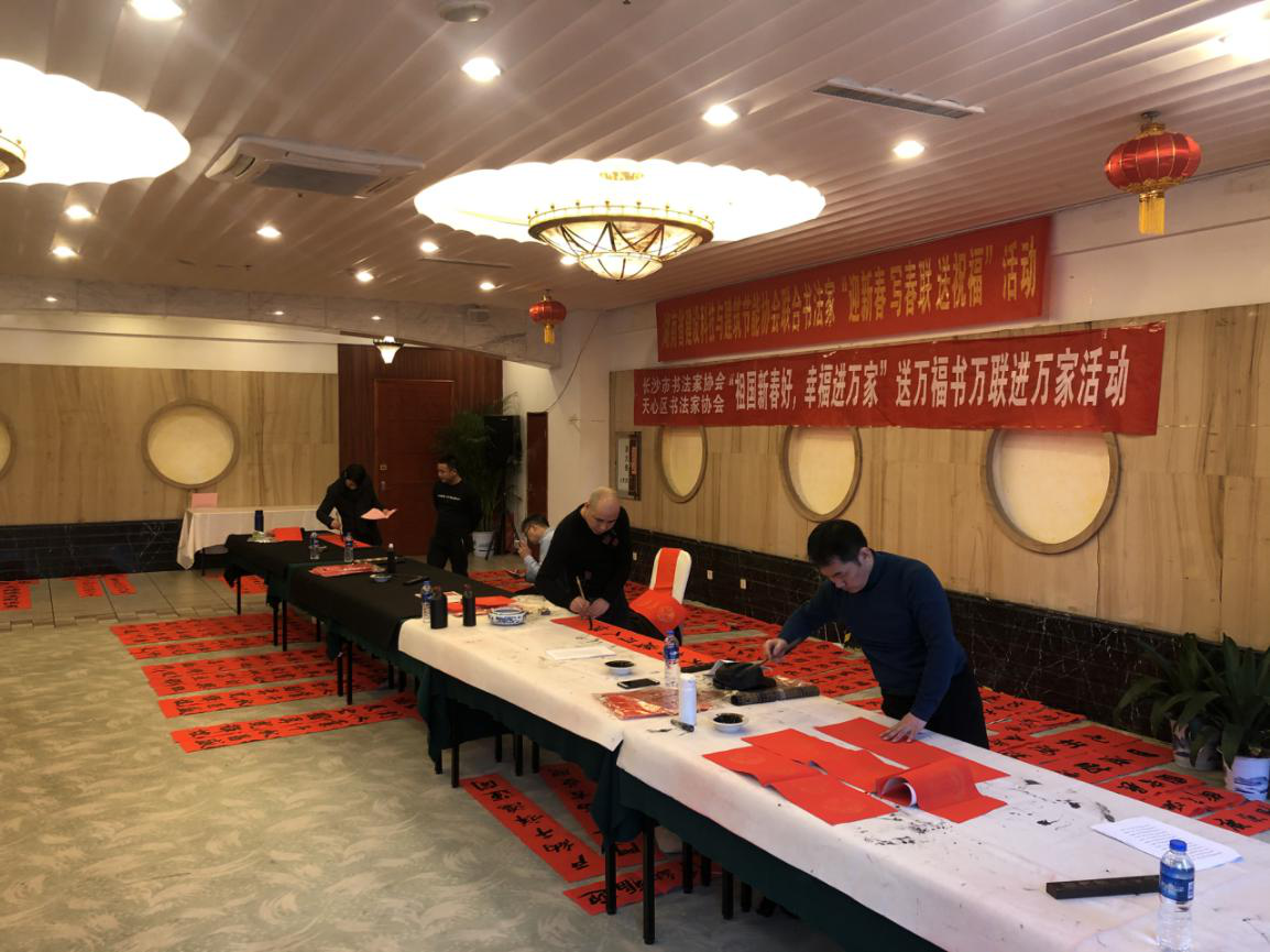 此次年会还邀请到了长沙市书法家协会,举办了“迎新春,写春联,送祝福”活动,将一份份喜悦和祝福送到大家手上。