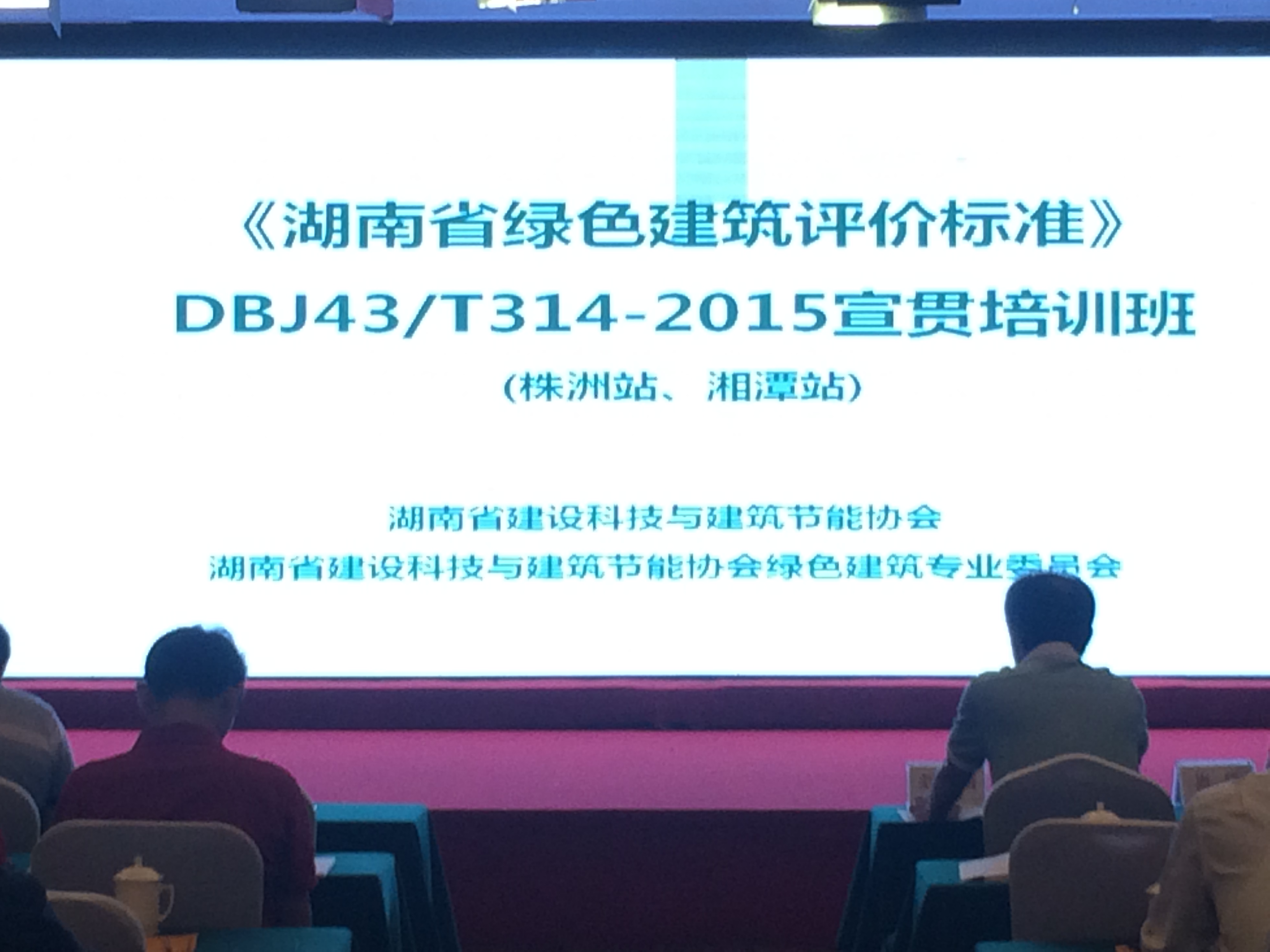 2016年7月7日,《湖南省绿色建筑评价标准》(DBJ43/T314-2015)株洲站、湘潭站宣贯培训在株洲举行。来自株洲市和湘潭市住房和城乡建设相关部门负责人,勘察设计单位、施工图审、施工、监理、物业管理及开发建设等单位和从事绿色建筑技术咨询单位约100多位专业技术人员及绿色建筑管理人员参加了本次培训。