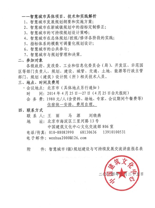 中国建筑文化中心 《关于举办智慧城市(镇)规划建设与可持续发展交流讲座的通知