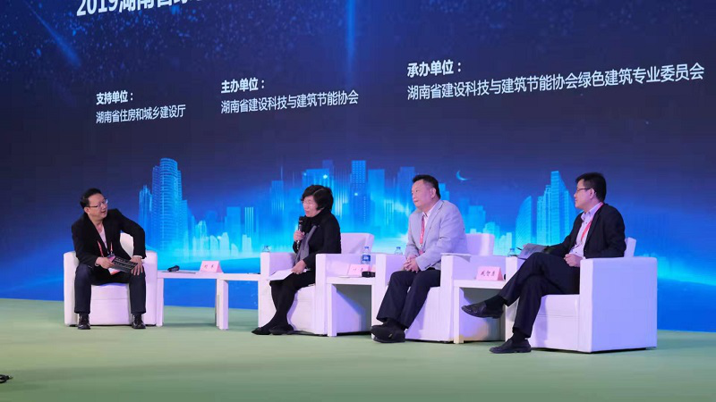 主题演讲期间,本届峰会举办了以“绿色发展、共创未来”为主题的沙龙。湖南省人大环境与资源保护委员会副巡视员刘军、深圳市建筑科学研究院股份有限公司董事长叶青、湖南建工集团有限公司副总经理陈浩、中南大学建筑与艺术学院博士、副教授、硕士导师戚智勇受邀参加沙龙研讨。沙龙就什么是绿色建筑、绿色建筑与装配式建筑的异同、发展绿色建筑的意义、如何发展好绿色建筑等议题展开了充分的探讨,探讨各方充分肯定了建筑领域向高质量绿色发展的重要意义。
