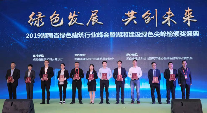 为树立行业典范,促进行业健康有序发展,湖南省建设科技与建筑节能协会举办了“2019湖湘建设绿色尖峰榜”评选活动。本届峰会上,湖南省住房和城乡建设厅巡视员高东山、湖南省建设科技与建筑节能协会轮值会长杨伟军、湖南建工集团有限公司副总经理陈浩、湖南省住房和城乡建设厅政策法规处处长张传领、建筑节能与科技处副处长李海浪向获得“2019湖湘建设绿色尖峰榜”建设科技、绿色建筑、建筑节能行业优秀企业、优秀项目和创新成果奖项的单位,以及获得上述行业突出贡献人物、优秀企业家、先进工作者奖项的个人颁发了奖牌、证书。