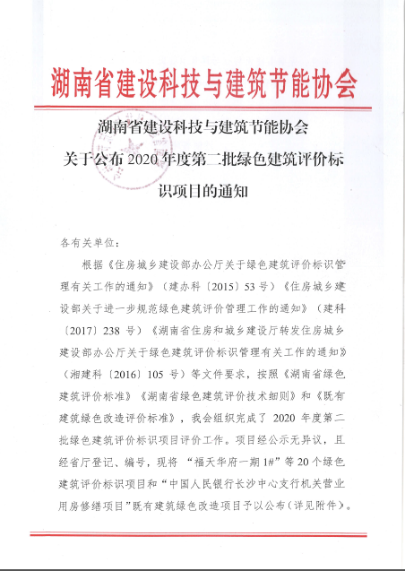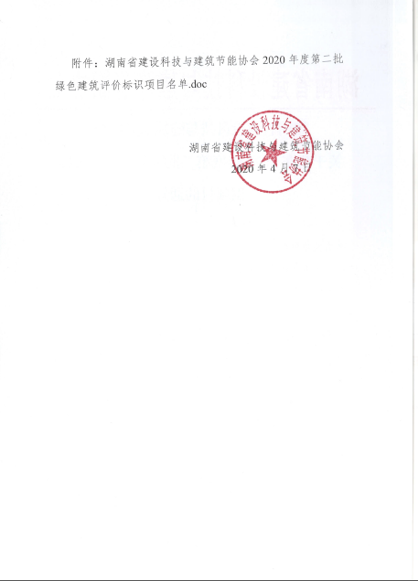 湖南省建设科技与建筑节能协会关于公布2020年度第二批绿色建筑评价标识项目的通知