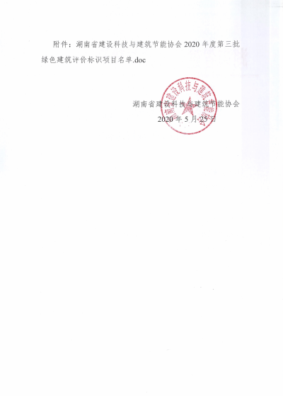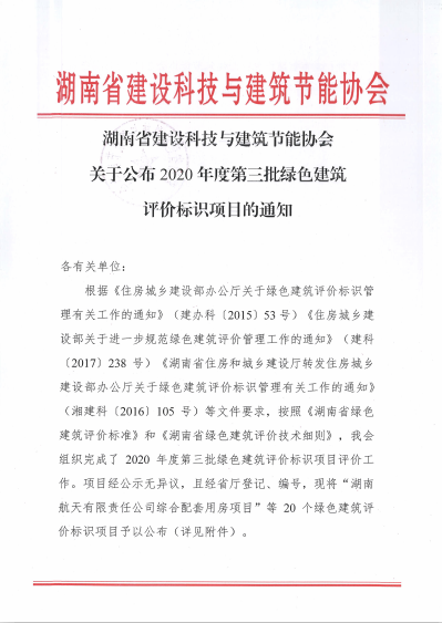 湖南省建设科技与建筑节能协会关于公布2020年度第三批绿色建筑评价标识项目的通知