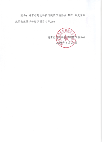 湖南省建设科技与建筑节能协会关于公布2020年度第四批绿色建筑评价标识项目的通知