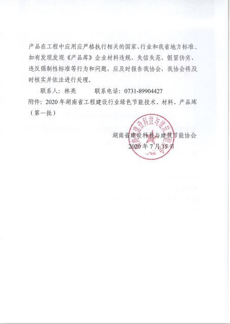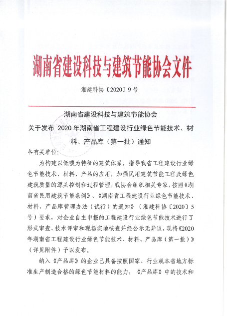 湖南省建设科技与建筑节能协会关于发布 2020年湖南省工程建设行业绿色节能技术、材料、产品库(第一批)
