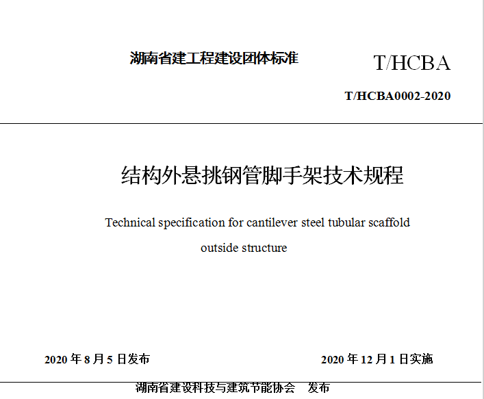 湖南省建设科技与建筑节能协会关于发布湖南省工程建设团体标准《结构外悬挑钢管脚手架技术规程》的通知