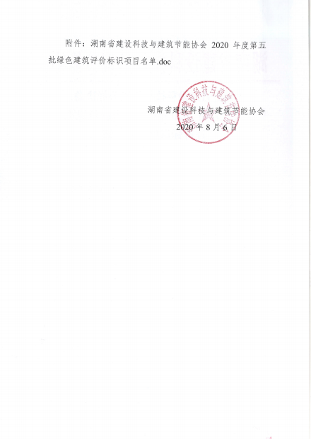 湖南省建设科技与建筑节能协会关于公布2020年度第五批绿色建筑评价标识项目的通知