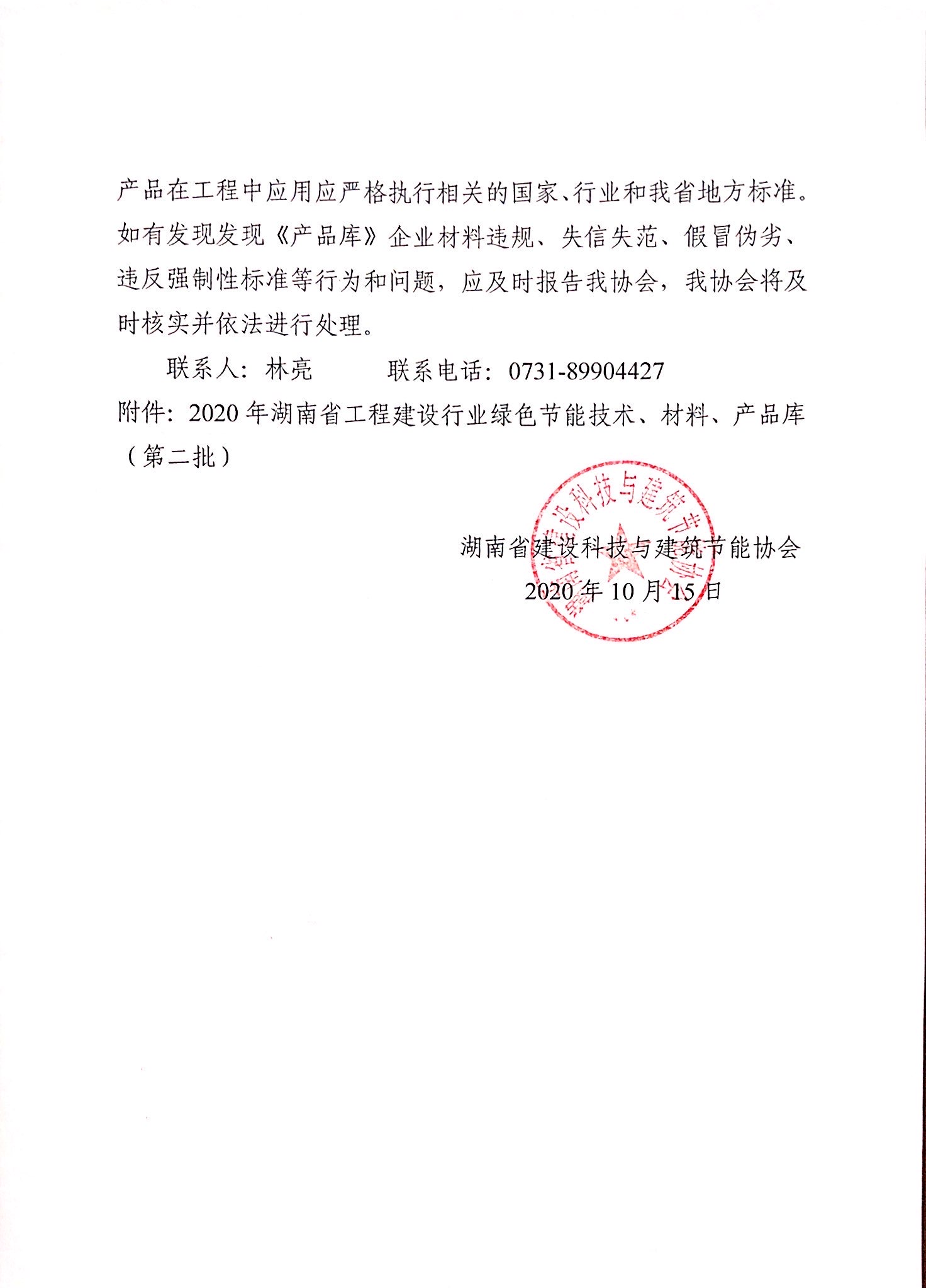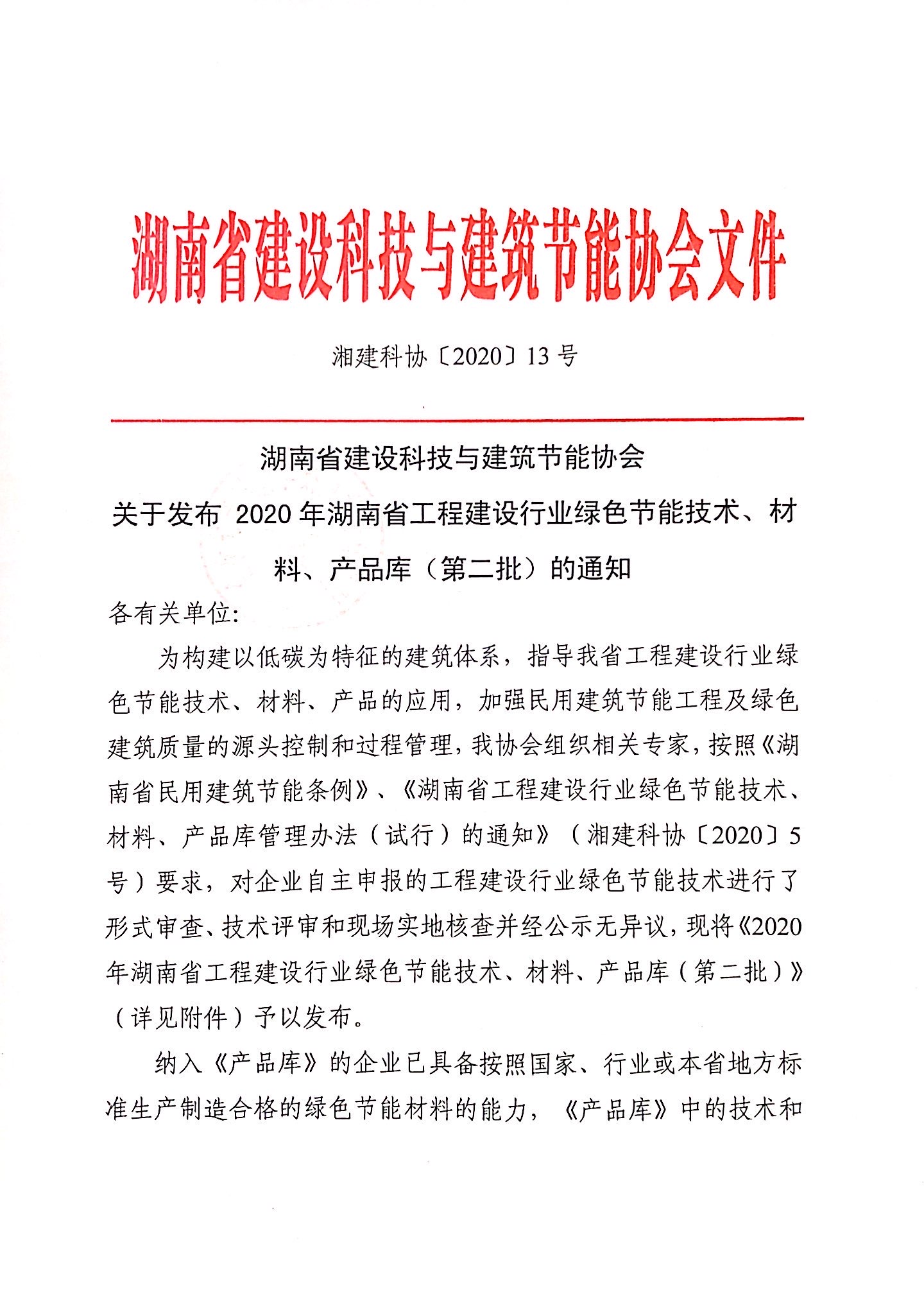 湖南省建设科技与建筑节能协会关于发布2020年湖南省工程建设行业绿色节能技术、材料、产品库(第二批)的通知