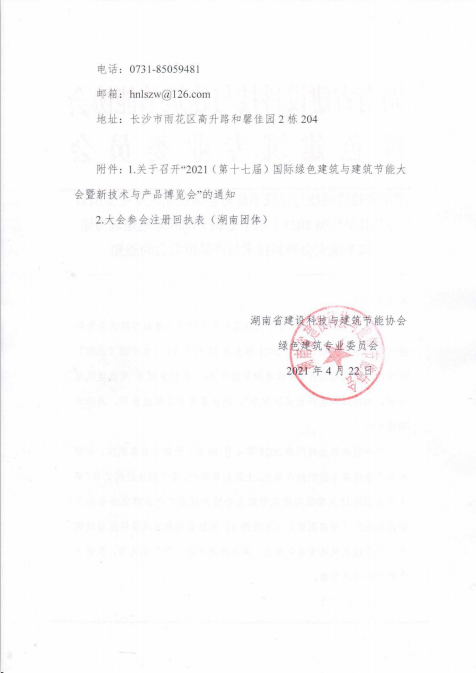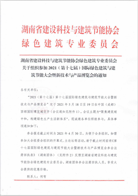 湖南省建设科技与建筑节能协会绿色建筑专业委员会关于组织参加2021(第十七届)国际绿色建筑与建筑节能大会暨新技术与产品博览会的通知
