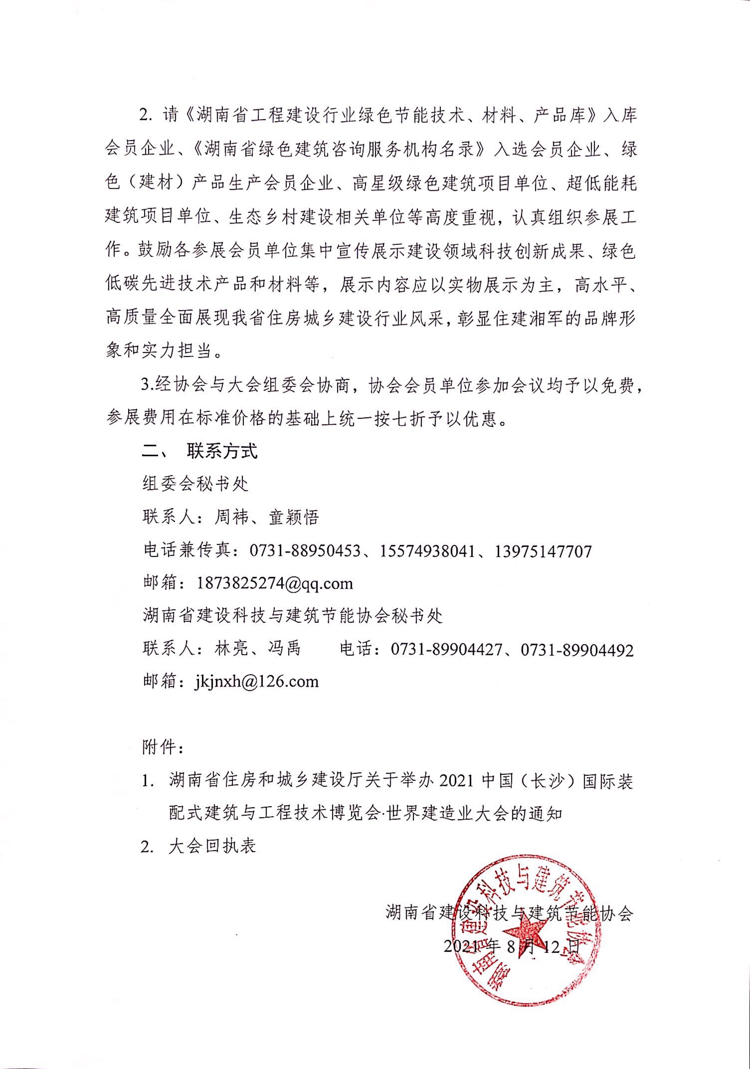 湖南省建设科技与建筑节能协会关于组织参加2021中国(长沙)国际装配式建筑与工程技术博览会·世界建造业大会的通知
