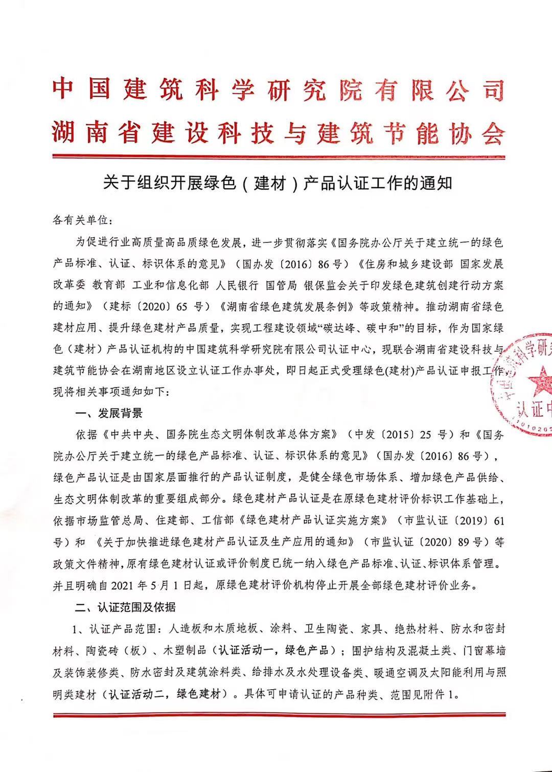 关于组织开展绿色(建材)产品认证工作的通知