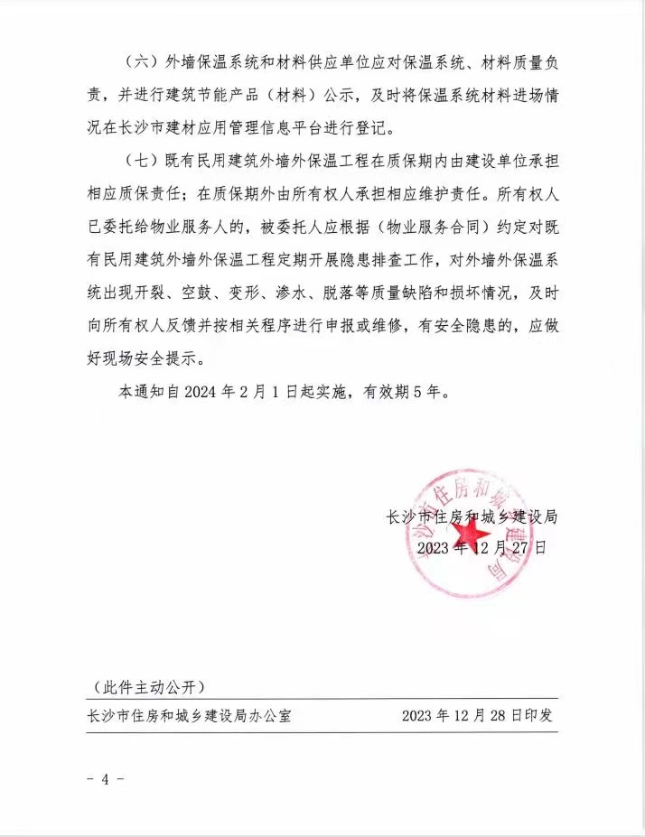 长沙市住房和城乡建设局发布关于进一步加强外墙保温工程管理的通知