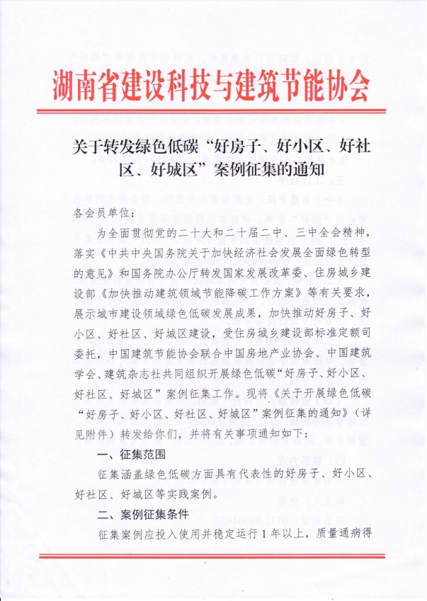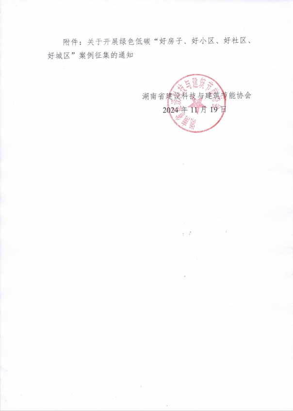 湖南省建设科技与建筑节能协会关于转发绿色低碳"好房子、好小区、好社区、好城区"案例征集的通知