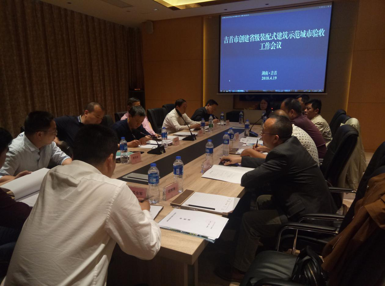 考察完之后召开了专家评审会,专家指出:吉首市认真落实省委省政府关于大力发展装配式建筑的政策文件,领导重视基地建设和项目推广应用,达到省级示范城市要求,特别是在装配式建筑应用到易地扶贫搬迁项目,在全国首开先河,受到住建部的高度肯定,成效显著,特色鲜明。建议进一步加强具有湘西特色的新型装配式建筑技术体系,并向西部地区进行推广,进一步加强吉首市装配式建筑质量保障体系建设,建立全过程安全防范机制,加快推动信息化技术的发展。