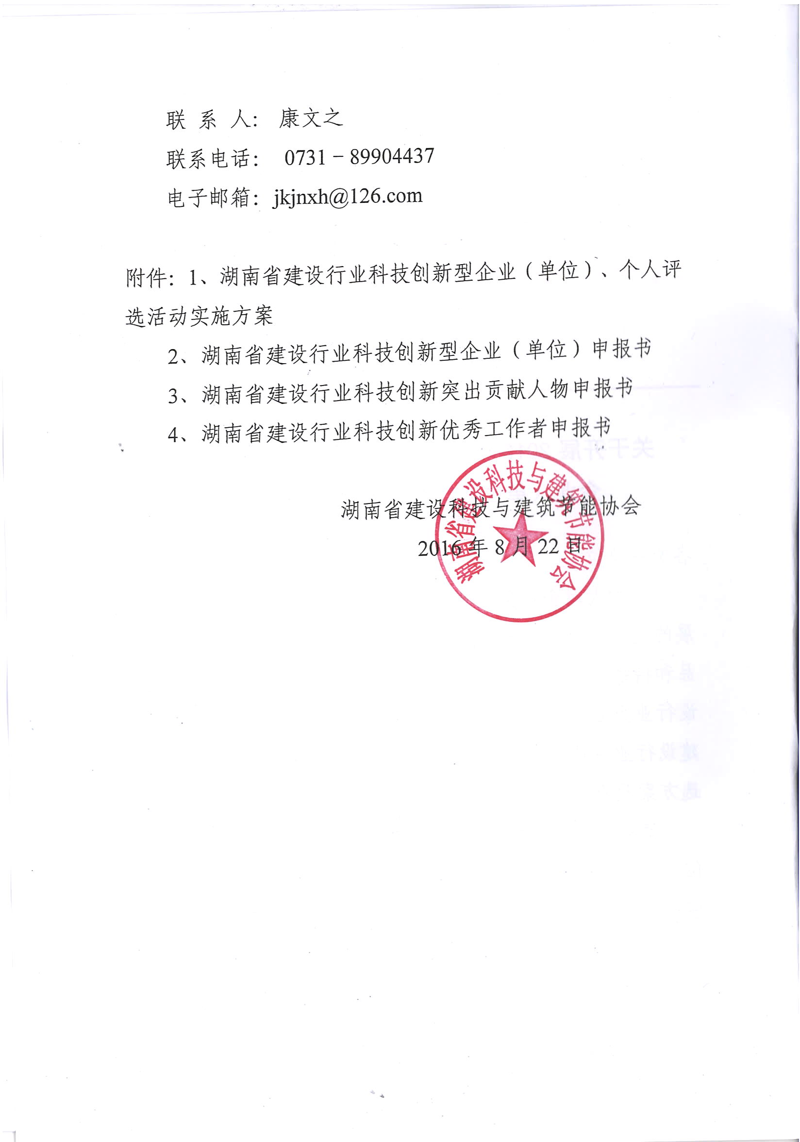 关于开展2016年度湖南省建设行业科技创新型企业(单位)、个人评选活动的通知